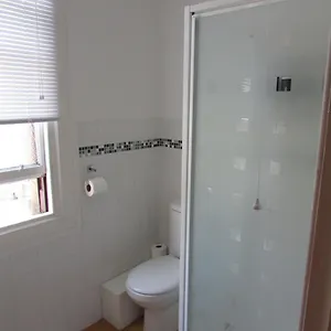 A walk-in shower and a separate toilet are featured in bathrooms.